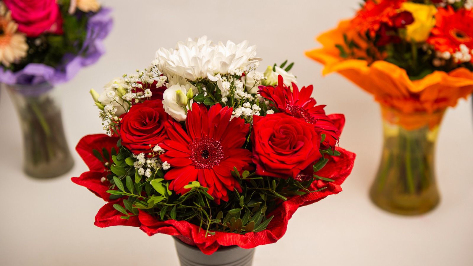 Zum Beispiel Gerbera, Chrysanthemen, Nelken und Alstroemerien.